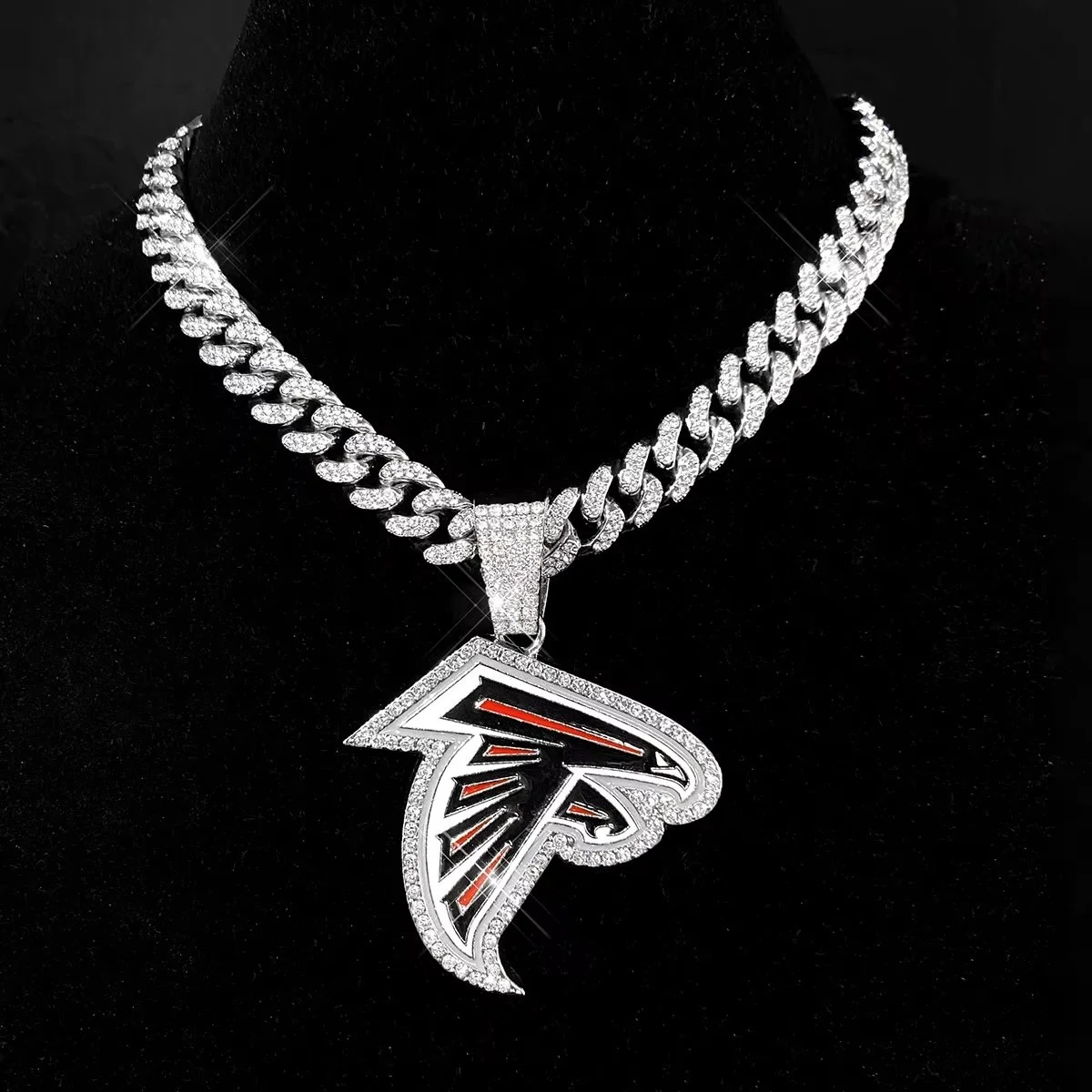 Atlanta Falcons Logo Pendant, meticulously crafted with exceptional attention to intricate detail and available with or without the stylish Cuban Link Chain Necklace, offering a perfect blend of passionate team spirit and sophisticated, elegant design that effortlessly complements any refined wardrobe or occasion.