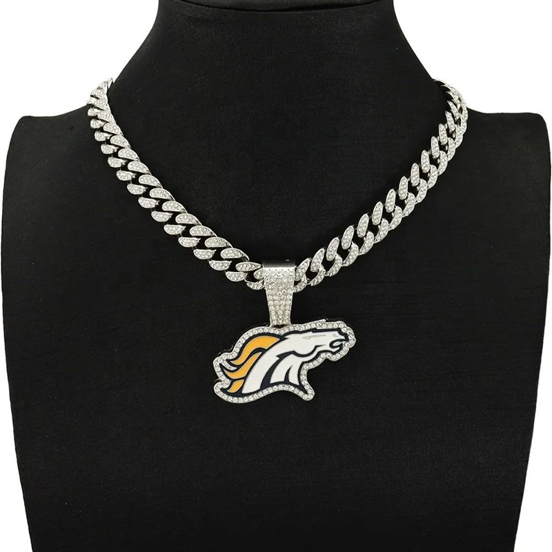 Denver Broncos Logo Pendant, exquisitely crafted with meticulous attention to detail and impeccable precision, available with or without the elegantly designed Cuban Link Chain Necklace. This stunning piece perfectly combines sophisticated style and unwavering team spirit, making it a truly timeless accessory that beautifully celebrates your enduring passion and loyalty for the team.