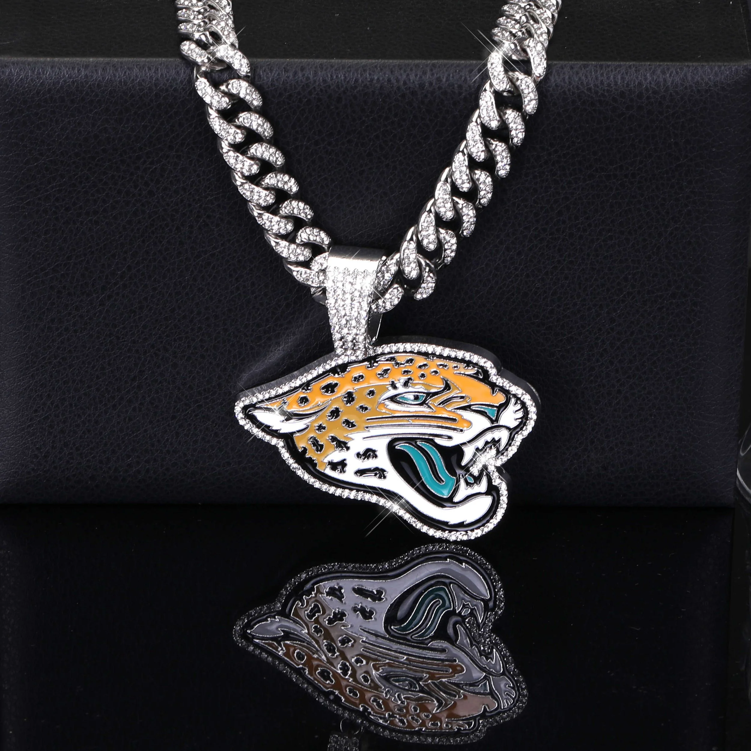 The Jacksonville Jaguars Logo Pendant is thoughtfully available with or without the elegant Cuban Link Chain Necklace, offering a stylish and versatile accessory option that seamlessly enhances both casual and sophisticated ensembles. This distinctive piece beautifully captures the dynamic spirit of the team while adding a polished and refined touch to your everyday look, making it a perfect accessory for any occasion.