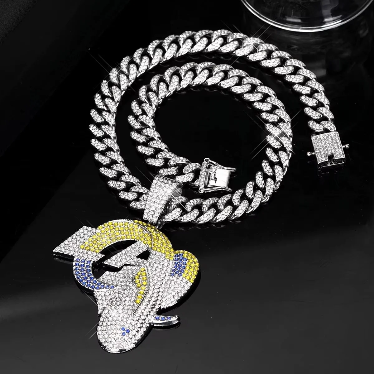 Los Angeles (LA) Rams Logo Pendant with or without the Cuban Link Chain Necklace