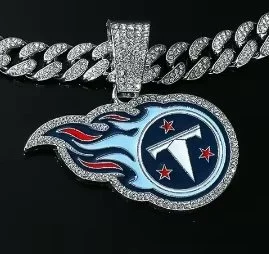 Tennessee Titans Logo Pendant, exquisitely crafted with meticulous detail and precision, offering a striking representation of the team’s emblem. This stunning piece is available either on its own or paired gracefully with the elegant Cuban Link Chain Necklace, creating a refined and polished look that effortlessly combines timeless sophistication with bold team pride and a touch of modern flair.
